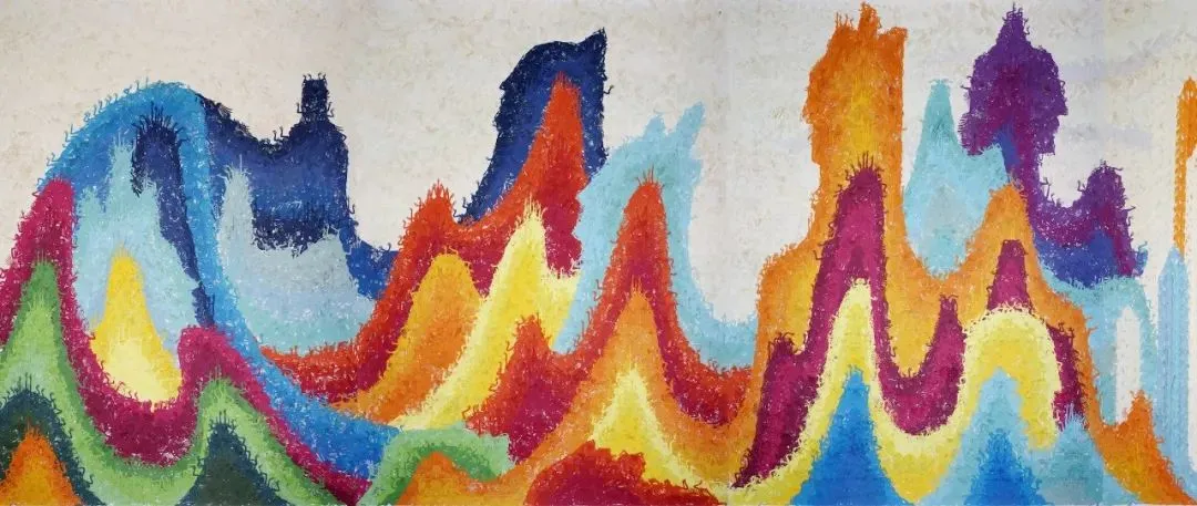 ▲ 邬建安《大河的诞生》(局部) 彩色水彩纸,拼贴于背绢宣纸, 2012-2015年