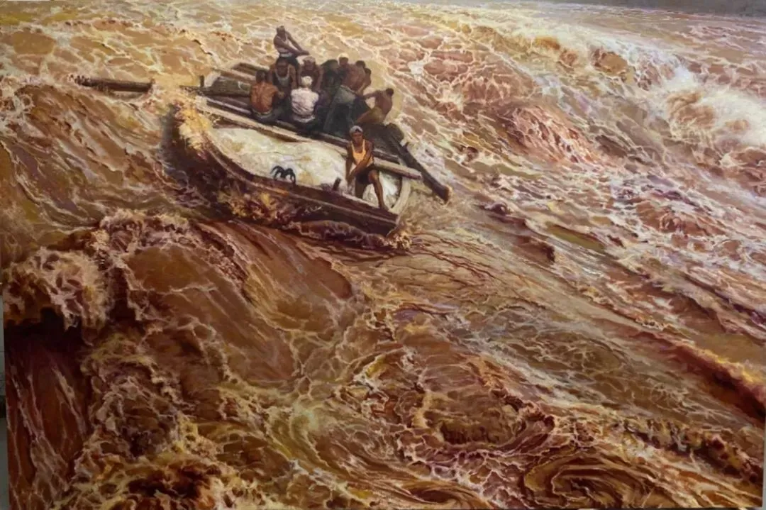 ▲ 杜键《永远的“在激流中前进”》 布面油画 2020年