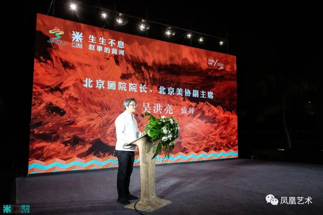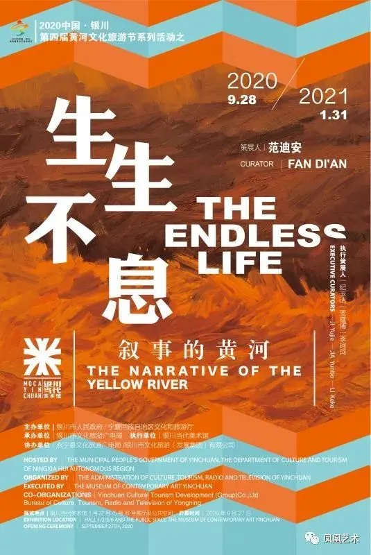 2020年9月27日,展览“生生不息——叙事的黄河”于银川当代美术馆开幕。本次展 览由中国美术家协会主席、中央美术学院院长范迪 安担任策展人,分为“亘古奔流”、“大河精神”、“共生家园”和“生态长治”四个板块,展出了66位艺术家的172件作品,涵盖绘画、雕塑、装置、影像、民间美术、摄影、建筑、设计等多种艺术表现形式。 以下是“凤凰艺术” 为您带来的现场报道 。
