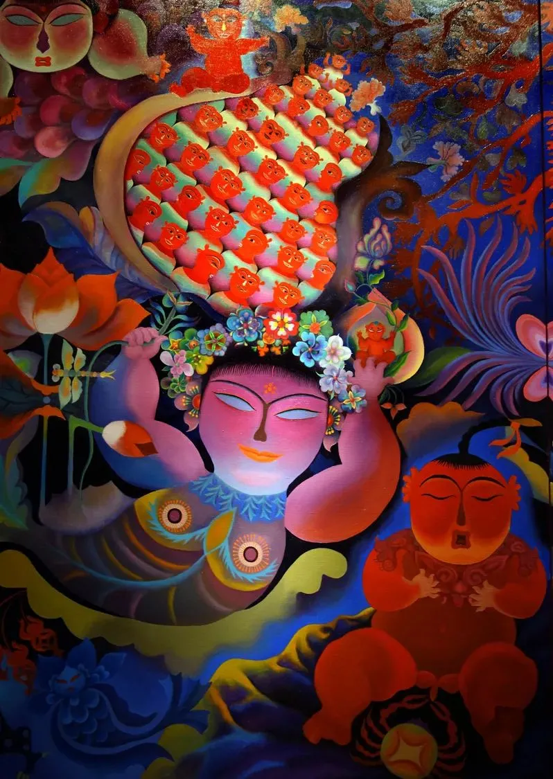 ▲ 吕胜中《生命-瞬间的永恒(局部)》 油画 2015年